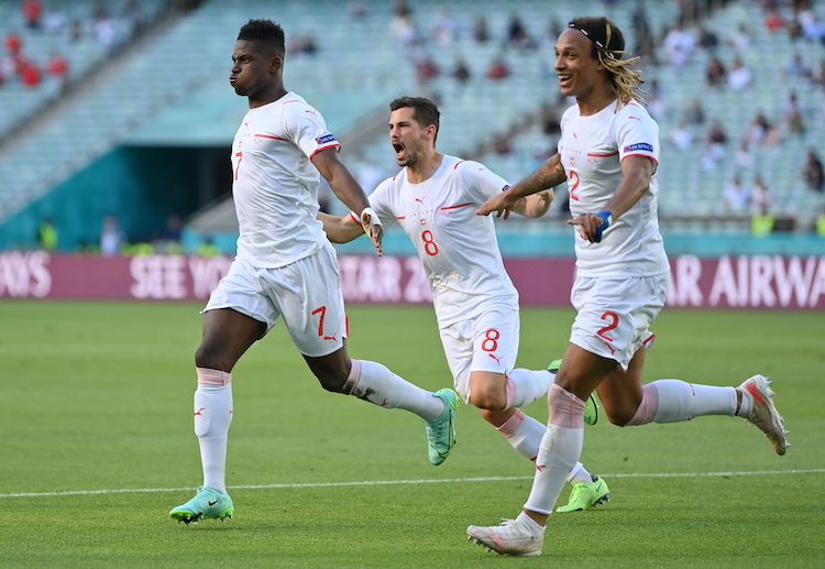欧洲杯 瑞士的恩博洛在禁区内一个漂亮兜射